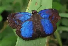 黑框蓝闪蝶(黑框蓝摩尔福蝶)鳞翅目 > 蛱蝶科 > 摩尔福蝶属 > 黑框蓝闪蝶