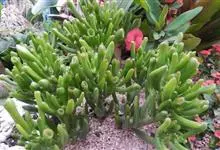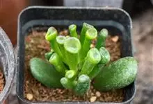 筒叶花月,是景天科青锁龙属的多年生草本植物。植株多分株,灌木状,茎较粗壮,圆柱形,表皮灰褐色;叶片肉质,互生,呈圆筒状,簇生于茎或分枝顶端,叶端呈斜截形,截面为椭圆形;花呈星状,淡白色;花期秋季。…全部>>