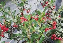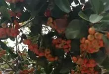 火棘 H. L. Li)是蔷薇科火棘属常绿灌木,老枝呈暗褐色;叶片呈倒卵形,边缘有钝锯齿,齿尖向内弯,两面皆无毛;叶柄短,无毛或嫩时有柔毛;花序是复伞房状,花瓣呈白色近圆形;果球近圆形,…全部>>