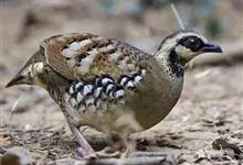 褐胸山鹧鸪:雄鸟体长22厘米,体重310克;雌鸟体长23厘米,体重220-275克。前额皮黄白色,头顶橄榄褐色。眼部的裸皮鲜红色,有一条宽阔的皮黄白色眉纹一直延伸到颈的侧部。上体亮橄榄褐色,具黑色横斑。…全部>>