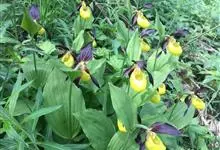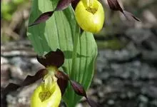 黄花杓兰:植株通常高30-50厘米,具粗短的根状茎。茎直立,密被短柔毛,基部具数枚鞘,鞘上方具3-6枚叶。叶片椭圆形至椭圆状披针形。花序顶生,通常具1花,罕有2花;花黄色,有时有红色晕,…全部>>