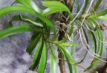 大序隔距兰 Garay):茎直立,扁圆柱形,伸长,达20余厘米,通常粗5-8毫米,被叶鞘所包,有时分枝。叶革质,多数,紧靠、二列互生,扁平,狭长圆形或带状,基部具多少V字形的叶鞘,…全部>>
