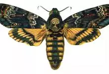 鬼脸天蛾,是鳞翅目天蛾科面形天蛾属动物。成虫翅展100~125毫米,体黑褐色;胸背有骷髅形斑纹;卵圆球形,直径约2毫米,淡黄绿色,表面光滑;老熟幼虫体长70~90毫米,蛹体长约56毫米;前翅为褐色,…全部>>