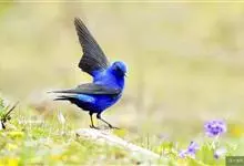 蓝大翅鸲是鹟科、大翅鸲属小型鸟类,体长19-21厘米。两翅尖长。雄鸟通体鲜紫蓝色具金属光泽。两翅和尾黑色。雌鸟上体灰褐色,头、颈、翕具棕白色纵纹,翅上有白色翅斑。虹膜暗褐色,嘴、脚黑色。…全部>>