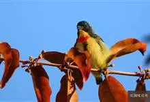 红胸啄花鸟:体重5-10克,体长60-92毫米。体形纤小。雄鸟上体呈辉亮的金属绿色;下体棕黄,胸部具一朱红色块斑,极易与其他啄花鸟区别。雌鸟上体呈橄榄绿,下体棕黄色。虹膜褐色,嘴褐黑色或角灰色,…全部>>