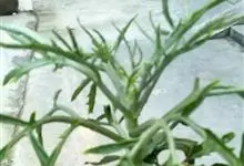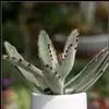 棒叶落地生根是景天科、落地生根属植物。茎直立、粉褐色。叶圆棒形,上表面有沟、粉色,有红褐斑。叶片交互对生,交叉排列成十字形。叶端锯齿上长有很小的幼株、落地后即可生根成活。原产非洲马达加斯加。…全部>>