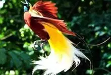 大极乐鸟是极乐鸟属中最大的鸟种。成年雄鸟体长可达到43厘米,雌性可达35厘米。雄鸟的额、颊、喉等墨绿色;头、颈黄色;上体暗赤栗色;腹部葡萄红色,胁部有长饰羽,其基部橙黄,中部黄色,…全部>>