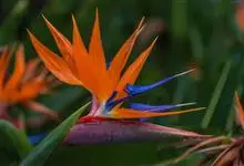 鹤望兰,别名天堂鸟,为鹤望兰科鹤望兰属的一种多年生草本植物;无木质树干;花序生于与叶柄近等长或稍短的花序梗上,佛焰苞1;花较小,萼片橙黄色,长7.5-10厘米,箭头状花瓣基部具耳状裂片,…全部>>