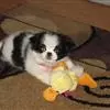 日本狆是极小型犬;被毛长而丰厚,不弯曲;毛色为白色底,带黑色或栗色斑块,斑块颜色越艳越好;斑块以在耳、身、面、尾根左右对称者为佳;头较大而圆,头骨平坦;吻短,鼻尖缩至两眼之间,几乎与眼同齐;眼大而凸出,…全部>>