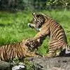 印度支那虎:简称印支虎。是老虎的一个亚种。雄性平均体重185千克,体长2.7米。与孟加拉虎相比,它们的体形较小,毛色更深,身上的条纹更短、更窄;而胃部、咽喉和两颊有较大的白色斑痕。…全部>>