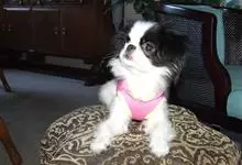 日本狆是极小型犬;被毛长而丰厚,不弯曲;毛色为白色底,带黑色或栗色斑块,斑块颜色越艳越好;斑块以在耳、身、面、尾根左右对称者为佳;头较大而圆,头骨平坦;吻短,鼻尖缩至两眼之间,几乎与眼同齐;眼大而凸出,…全部>>