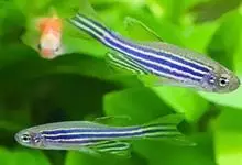 斑马鱼(蓝条鱼、花条鱼、印度鱼)鲤形目 > 鲤科 > (鱼丹)属 > 斑马鱼