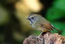 白喉姬鹟:体长11-13厘米,是一种体型小的橄榄褐色鹟。特征为颏及喉白色且成胸兜,缘以黑色的髭纹及项纹。上体红褐色,前额和一相连的短的眉纹白色,眼先、耳覆羽和头侧灰褐色而杂白色,颏、喉白色,…全部>>