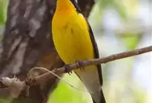 白眉姬鹟是小型鸟类,体长11-14厘米。雄鸟上体大部黑色,眉纹白色,在黑色的头上极为醒目。腰鲜黄色,两翅和尾黑色,翅上具白斑。下体鲜黄色。雌鸟上体大部橄榄绿色。腰鲜黄色,翅上亦具白斑。下体淡黄绿色。…全部>>
