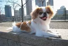日本狆是极小型犬;被毛长而丰厚,不弯曲;毛色为白色底,带黑色或栗色斑块,斑块颜色越艳越好;斑块以在耳、身、面、尾根左右对称者为佳;头较大而圆,头骨平坦;吻短,鼻尖缩至两眼之间,几乎与眼同齐;眼大而凸出,…全部>>