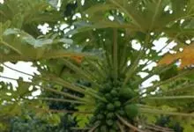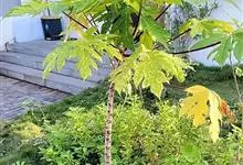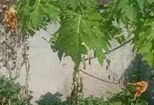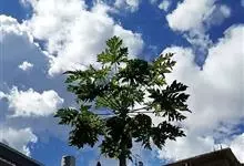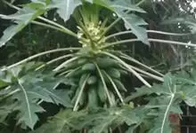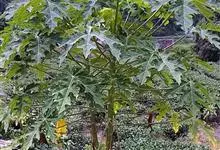 番木瓜,番木瓜科番木瓜属的常绿软木质小乔木,高达10米,具有乳汁;茎不分枝或有时于损伤处分枝;叶大且聚生于茎顶,近似盾形,叶柄中空;花单性或两性,有些品种雄株偶尔生两性花或雌花,…全部>>