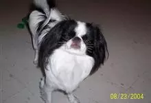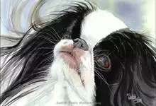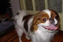 日本狆是极小型犬;被毛长而丰厚,不弯曲;毛色为白色底,带黑色或栗色斑块,斑块颜色越艳越好;斑块以在耳、身、面、尾根左右对称者为佳;头较大而圆,头骨平坦;吻短,鼻尖缩至两眼之间,几乎与眼同齐;眼大而凸出,…全部>>