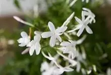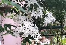 素馨花,木犀科素馨属多年生的攀援灌木植物。攀援灌木,小枝圆柱形,具棱或沟;叶对生,叶轴常具窄翼,小叶片卵形或长卵形;聚伞花序顶生或腋生,花序梗长,苞片线形,花萼无毛,裂片锥状线形,花冠白色,…全部>>
