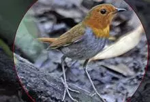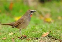 日本歌鸲:体型小似麻雀,但羽毛颜色较为美丽。嘴细长,嘴须不发达;翅短圆,上体草黄褐;雄鸟喉部橙棕色,十分明显,雌鸟却转为淡橙黄色。第一枚初级飞羽短狭;尾长约为跗蹠长度的二倍;跗蹠黑褐色,形粗长而健。…全部>>