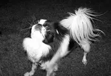 日本狆是极小型犬;被毛长而丰厚,不弯曲;毛色为白色底,带黑色或栗色斑块,斑块颜色越艳越好;斑块以在耳、身、面、尾根左右对称者为佳;头较大而圆,头骨平坦;吻短,鼻尖缩至两眼之间,几乎与眼同齐;眼大而凸出,…全部>>