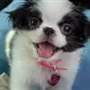 日本狆是极小型犬;被毛长而丰厚,不弯曲;毛色为白色底,带黑色或栗色斑块,斑块颜色越艳越好;斑块以在耳、身、面、尾根左右对称者为佳;头较大而圆,头骨平坦;吻短,鼻尖缩至两眼之间,几乎与眼同齐;眼大而凸出,…全部>>