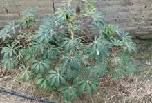 木薯,为大戟科木薯属的一种直立灌木,又名木番薯、树薯。木薯高1.5-3米;块根圆柱状。叶纸质,轮廓近圆形;裂片倒披针形至狭椭圆形;托叶三角状披针形。圆锥花序顶生或腋生,花萼带紫红色且有白粉霜。…全部>>
