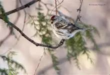 红额金翅雀:共有14个亚种。小型鸟类,体长12-14厘米。额、脸颊和颏朱红色,眼先和眼周黑色,在淡色的头部极为醒目。上体灰褐或乌褐色,尾上覆羽白色,两翅和尾黑色,翅上有黄色斑。下体喉、胸灰褐或乌褐色…全部>>