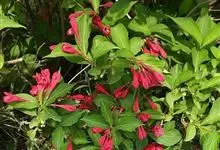 红王子锦带花是忍冬科锦带花属的落叶开张性灌木。株高1 -2米;嫩枝淡红色,老枝灰褐色;单叶对生,呈椭圆形,先端渐尖,叶缘有锯齿,红枝及叶脉具柔毛;花冠漏斗状钟形,花冠筒中部以下变细,聚伞花序,…全部>>