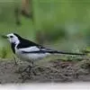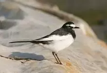 日本鹡鸰:体长约20厘米。上体多黑色,额、颏及眉纹白,下体白,两翼黑而具白色横斑及羽缘,尾黑而边缘白色。虹膜深褐色;嘴黑色;脚黑色。飞行时发出嘁喳声,具复杂而独特的鸣声。喜农田、稻田和溪流。…全部>>