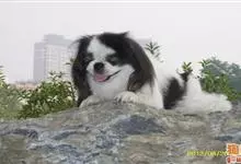 日本狆是极小型犬;被毛长而丰厚,不弯曲;毛色为白色底,带黑色或栗色斑块,斑块颜色越艳越好;斑块以在耳、身、面、尾根左右对称者为佳;头较大而圆,头骨平坦;吻短,鼻尖缩至两眼之间,几乎与眼同齐;眼大而凸出,…全部>>