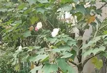 木芙蓉,锦葵科木槿属落叶灌木或小乔木。小枝上有细绒毛;叶片为卵状心形,托叶为披针形,常早落;花单生,花萼为钟形,花冠初为白色或淡红色,后逐渐变为深红色;果实为扁球形,有淡黄色的毛附着。花期8到10月。…全部>>