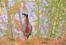 血雉雉科血雉属鸟类,别名血鸡、松花鸡,血雉的雄鸟大覆羽、尾下覆羽、尾上覆羽、脚、头侧、腊膜为红色,故称血雉。其别名甚多,各地皆异。在甘肃,因其胸侧和翅上覆羽沾绿,被称为“绿鸡”;因其羽毛形似柳叶,…全部>>
