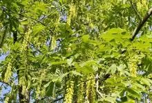 青钱柳 Il jinsk.),胡桃科青钱柳属的落叶乔木植物。枝裸芽具柄,密锈褐色腺鳞;枝条髓部薄片状分隔;叶奇数羽状复叶,基部歪斜,宽楔形或近圆,具锐锯齿;花雌雄同株;雌、雄花序均葇荑状;果具短柄,…全部>>