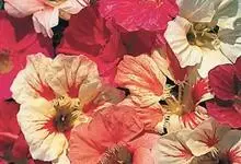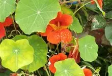 旱金莲是旱金莲科旱金莲属蔓生一年生草本植物。叶互生,叶柄向上扭曲,盾状,叶圆形,具波状浅缺刻,下面疏被毛或有乳点;花黄、紫、桔红或杂色,花托杯状,花瓣为圆形,边缘具缺刻;果实为扁球形;花果期6-10月,…全部>>