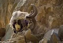 岩羊是偶蹄目牛科岩羊属哺乳动物。颜色与岩石相像,两性皆具角,雄羊角大而弯曲,角外表具不明显的横棱且体壮实,雌羊角短小;头较小,眼大,耳小,颏下无须;体背面为棕灰或石板灰色略有蓝色反光,…全部>>