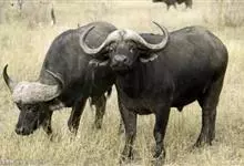非洲野水牛:共有5个亚种。头体长2.1-3.4米,身高1-1.7米,体重300-900千克。胸膛宽阔,四肢粗壮,头大角长,雄性的角从头部向外和向下扩散,在一些雄性中,角通过覆盖头部的大盾连接。头顶的…全部>>
