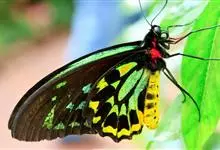 亚历山大女皇鸟翼凤蝶,又称大鸟翼蝶,是鳞翅目凤蝶科鸟翼蝶属蝴蝶;翅膀圆阔、褐色,雌性翅膀上会点缀着耀眼的白色斑纹;雄性翅膀上则闪耀着红蓝色的光泽。亚历山大女皇鸟翼凤蝶幼时很黑,身上长有红色的结节,…全部>>