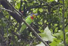 金喉拟啄木鸟,是须鴷科、拟啄木鸟属的鸟类。金喉拟啄木鸟为小型鸟类,体长19-24厘米。额深红色,头顶金黄色,后枕具一大块深红色斑,耳羽和头侧银灰色,上体草绿色,颏和上喉金黄色,下喉淡银灰色,…全部>>