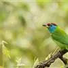 黑眉拟啄木鸟,为须䴕科、拟啄木鸟属的小型鸟类,体长20-25厘米,外形和金喉拟啄木鸟非常相似,但具粗著的黑色眉纹,头侧和耳覆羽以及下喉蓝色而不为银灰色,前颈两侧各有一块鲜红色斑。全部>>