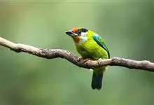 金喉拟啄木鸟,是须鴷科、拟啄木鸟属的鸟类。金喉拟啄木鸟为小型鸟类,体长19-24厘米。额深红色,头顶金黄色,后枕具一大块深红色斑,耳羽和头侧银灰色,上体草绿色,颏和上喉金黄色,下喉淡银灰色,…全部>>