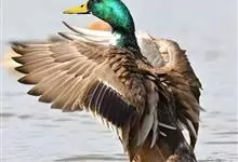 绿头鸭属游禽,大型鸭类。体长47-62厘米,体重大约1千克,外形大小和家鸭相似。雄鸟嘴黄绿色,脚橙黄色,头和颈辉绿色,颈部有一明显的白色领环。上体黑褐色,腰和尾上覆羽黑色,两对中央尾羽亦为黑色,且向…全部>>