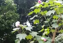 木芙蓉,锦葵科木槿属落叶灌木或小乔木。小枝上有细绒毛;叶片为卵状心形,托叶为披针形,常早落;花单生,花萼为钟形,花冠初为白色或淡红色,后逐渐变为深红色;果实为扁球形,有淡黄色的毛附着。花期8到10月。…全部>>