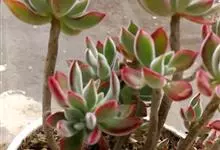 锦晃星是景天科、石莲花属多肉植物。多年生小灌木状多浆植物,灰绿色卵状倒披针形肥厚肉质叶轮状互生,全缘,椭圆尖头,长3-4厘米,宽2-2.5厘米,厚约1厘米,玲凉季节阳光下,叶端及上缘呈红色。…全部>>