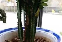 霸王鞭,是大戟科大戟属的多年生肉质灌木,全株含白色乳汁;茎直立,茎基部圆柱形,上部4~5纵棱,边缘波状,外面深绿色;叶互生,上部叶密集,近于簇生,具短柄,其基部有利刺1对;叶片披针形,先端圆,…全部>>