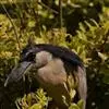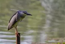 夜鹭是中型涉禽,体长46-60厘米。体较粗胖,颈较短;嘴尖细,微向下曲,黑色;胫裸出部分较少,脚和趾黄色;头顶至背黑绿色而具金属光泽;上体余部灰色;下体白色;枕部披有2-3枚长带状白色饰羽,下垂至背上,…全部>>