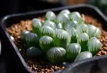 姬玉露 M.B.Bayer)是阿福花科,十二卷属的多年生草本。植株无茎,初为单生,后逐渐呈群生状;叶绿色,肉质,上半段呈透明或半透明状,称为“窗”,用于光合作用。总状花序,小花白色。原产南非,…全部>>