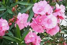 夹竹桃,又名红花夹竹桃、欧洲夹竹桃,是夹竹桃科夹竹桃属的一种常绿直立大灌木,枝条灰绿色,含水液。叶披针形,3叶轮生。聚伞花序顶生,花冠粉红至深红色,花冠漏斗状,有特殊香味。蓇葖果,圆柱形。种子长圆形,…全部>>