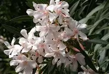 白花夹竹桃是夹竹桃科、夹竹桃属植物夹竹桃的栽培品种。常绿直立大灌木,枝条灰绿色;嫩枝条具稜,被微毛,老时毛脱落。叶3-4枚轮生,下枝为对生,叶面深绿,叶背浅绿色;侧脉纤细平行与中脉成直角;叶柄扁平,…全部>>