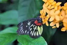 报喜斑粉蝶是粉蝶科斑粉蝶属的一种动物,又名红肩粉蝶、藤粉蝶等。幼虫群集性很强,从同一卵块孵化出的幼虫,幼龄期全部群集在一起取食,高龄幼虫常分散成小群。幼虫群集危害叶片,造成秃枝,严重者可将树吃成光杆,…全部>>
