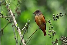 棕尾褐鹟:体重9-16克;体长109-122毫米,是一种体型略小的红褐色鹟。眼圈皮黄,喉块白,头石板灰色,背褐,腰棕色,下体白,胸具褐色横斑,两胁及尾下覆羽棕色。通常具白色的半颈环。…全部>>